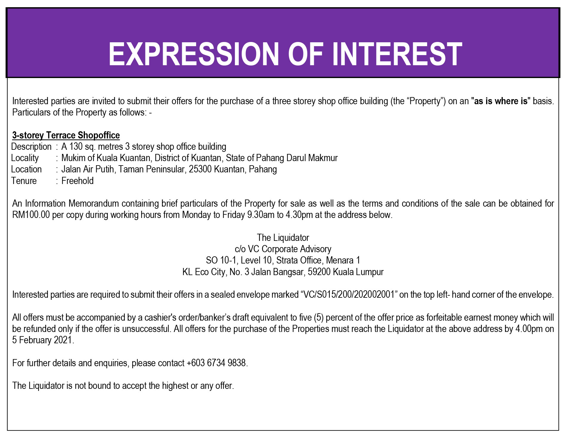 EOI – VC/ S015/ 200/ 202002001